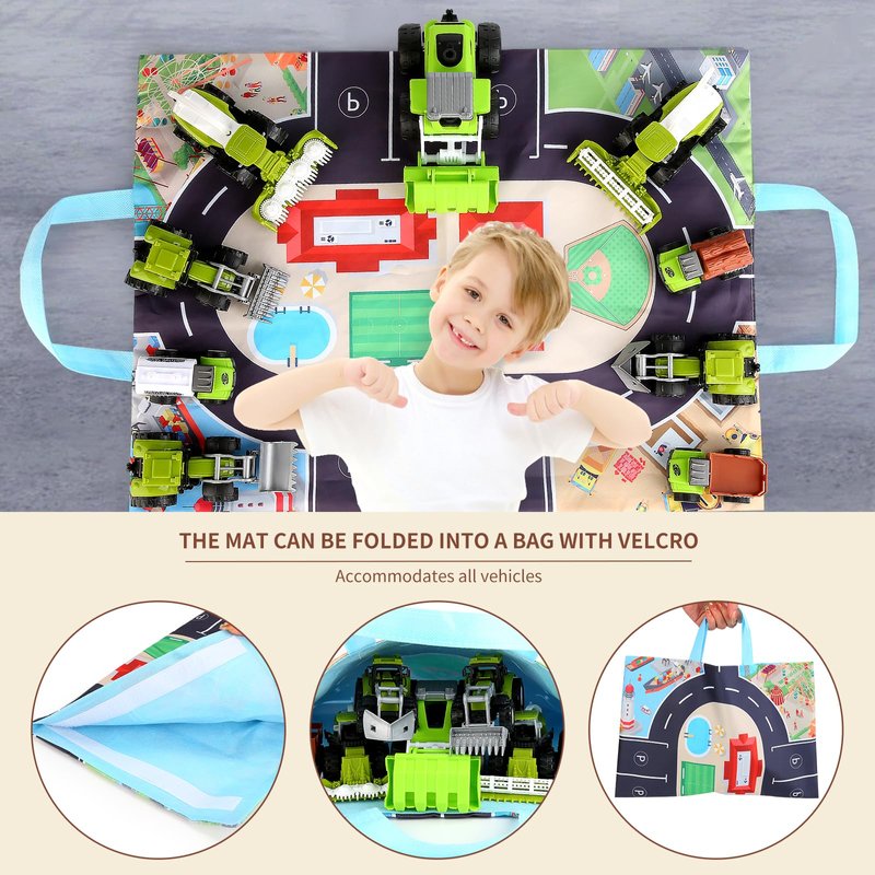 - Game mats and storage bags: Map of urban street parking lots, which can simulate traffic scenarios. The game pad can be folded into a storage bag for easy storage of cars.