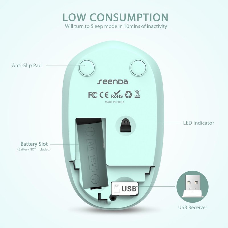 seenda 2.4G Wireless Mouse -- Features advanced 2.4G wireless technology that ensures reliable connection up to 33ft. Sleek design with noiseless clicking, keeps you focused on what you are working on without disturbing others.