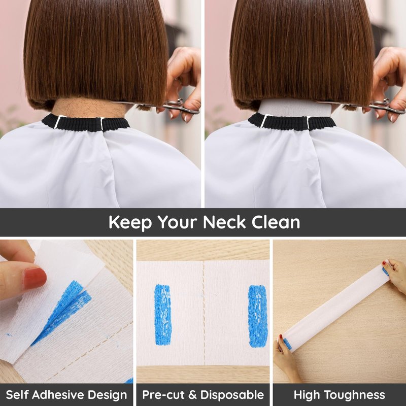 - 【Comfortable Hair Tools】80pcs self-adhesive disposable neck straps with pre-cut lines can be easily picked and stuck, keeping the neck neat. The neck duster brush features bouncy dense nylon bristles for soft touch. The handle is easy to grip and can quickly sweep excess hair from the neck, ears and face. The comb is sturdy and lightweight, and will not scratch the hair or cause tangles.