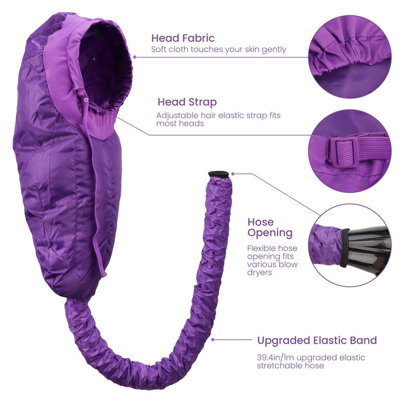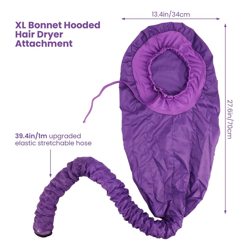 Segbeauty Bonnet Hooded Hair Dryer Attachment, XL Adjustable Deep Conditioning Cap, Upgraded Drying Heat Cap with Elastic Strap for Curly Hair Nursing Oil Treat-Ment Fast Drying Styling Purple