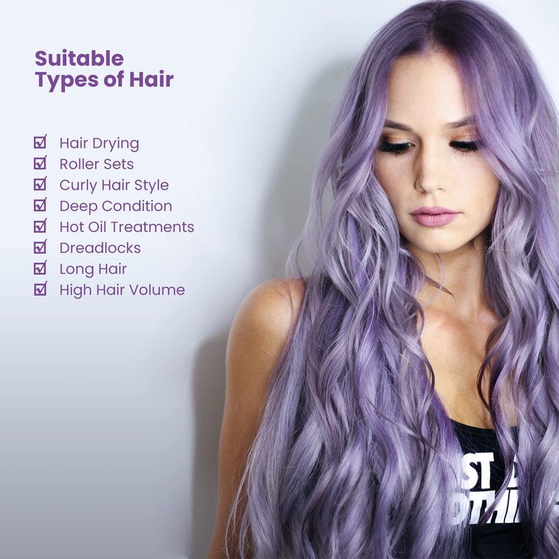 - 【Extra Larger Hood Capacity】Equipped with an adjustable Hair Elastic Strap to fix bonnet hooded cap. Larger hood capacity to hold almost any hairstyle (Long Hair / High Hair Volume) including hair curlers and rollers, deep conditioning, and hair oil treat-ments.