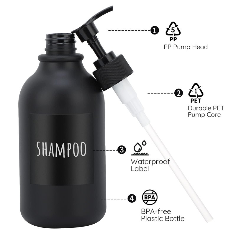 - 【Large Capacity with 6 Water-proof SELF-LABELING Stickers】Each dispenser bottle holds 16.9oz/500ml large capacity to meet the whole family essential need. 6 separate water-proof label stickers BODY SOAP, SHAMPOO, CONDITIONER, HAND SOAP, DISH SOAP, LOTION are NOT pre-stuck on the bottles, you can stick them for your free choice.