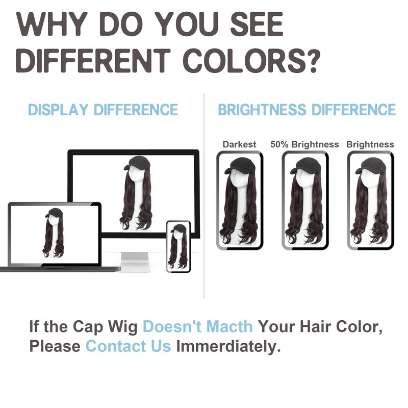 - Baseball cap with hair extension is made of high quality synthetic fiber specially developed to immitate human hair.It's a wig hat with hair that touches soft and smooth like real hair at a more affordable price.Be aware that synthetic hair cannot be curled or dyed.All hair may shed slightly especially when you wear for the first time which is normal.Just shake it and take away the dropped hair.Colors showed may vary slightly depending on your personal computer or cellphone monitor settings.