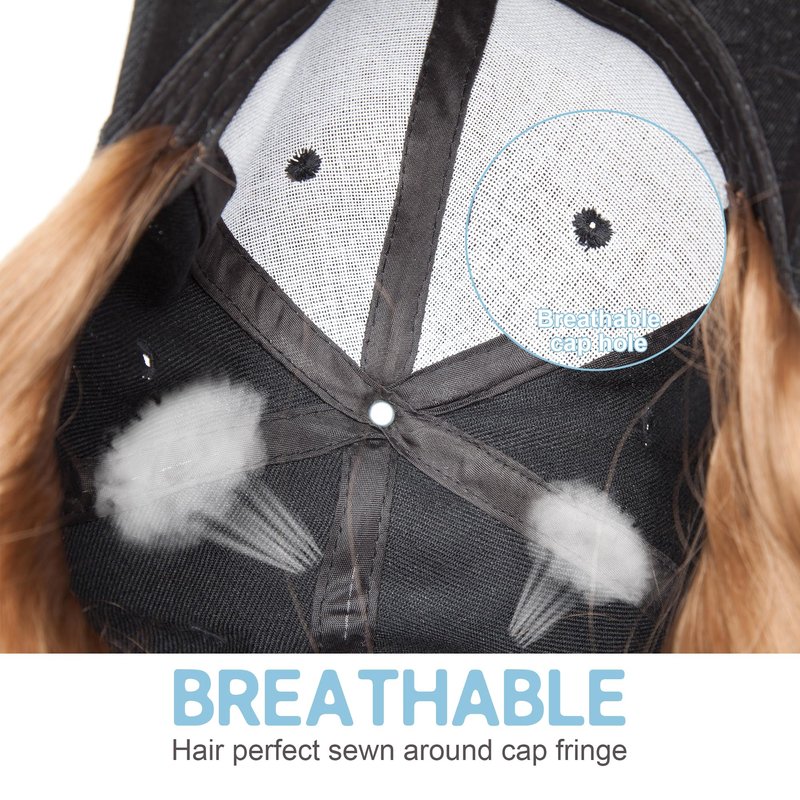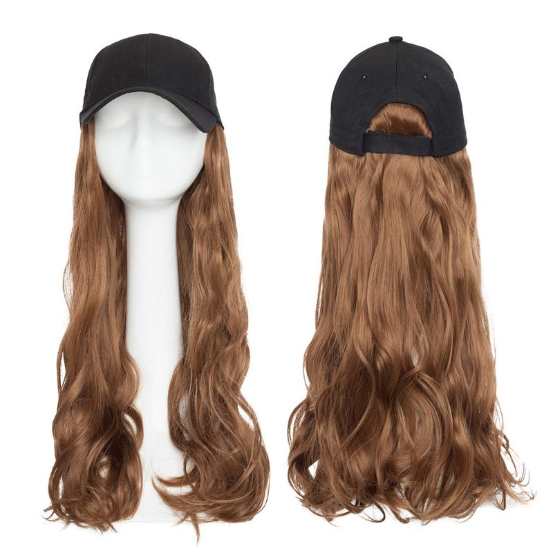 - Baseball cap with hair extension is made of high quality synthetic fiber specially developed to immitate human hair.It's a wig hat with hair that touches soft and smooth like real hair at a more affordable price.Be aware that synthetic hair cannot be curled or dyed.All hair may shed slightly especially when you wear for the first time which is normal.Just shake it and take away the dropped hair.Colors showed may vary slightly depending on your personal computer or cellphone monitor settings.