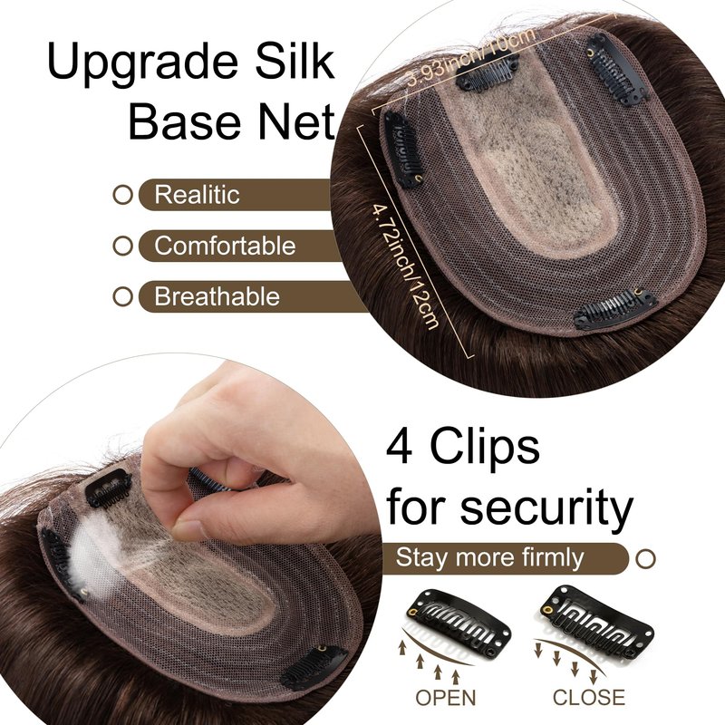 - ♛Silk base coverage Toupee♛ Topper with silk base has the most natural appearance compared to other like products.It can barely be told from real human scalp even through close observation.No one can find your secret. Base size: 10 cm x 12 cm(3.9”x4.7” approximately).