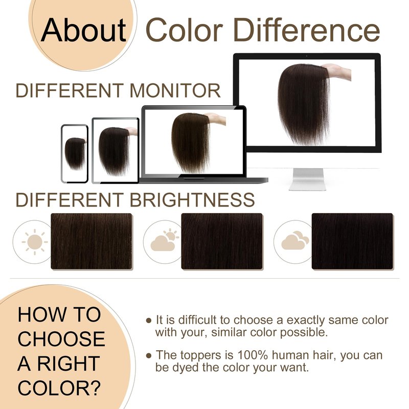 - ♛Warmer Reminder♛ Color might be slightly different from the picture showed considering light and different monitor. But since it’s real human hair, the topper can be dyed to the exact color you want if needed.