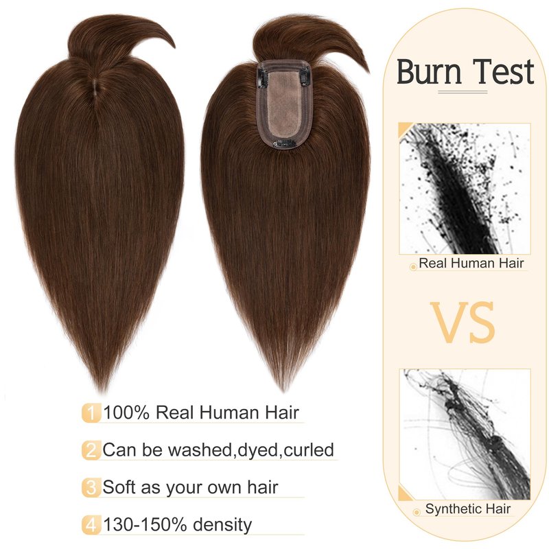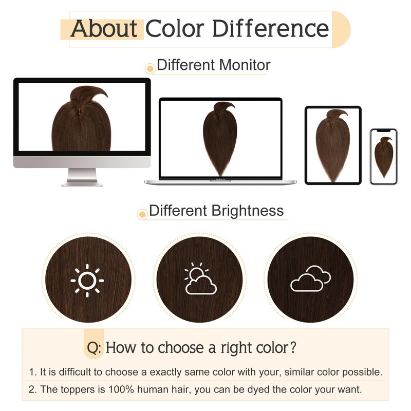 - ♛About color difference♛ Color might be slightly different from the picture showed considering light and different monitor. But since it’s real human hair, the topper can be dyed to the exact color you want if needed.