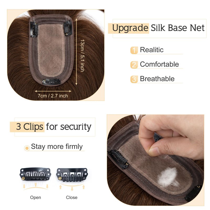 - ♛Realistic Silk base coverage Toupee♛ Topper with silk base has the most natural appearance compared to other like products.It can barely be told from real human scalp even through close observation.No one can find your secret. Base size: 7 cm x 13 cm(2.7”x5.1” approximately).