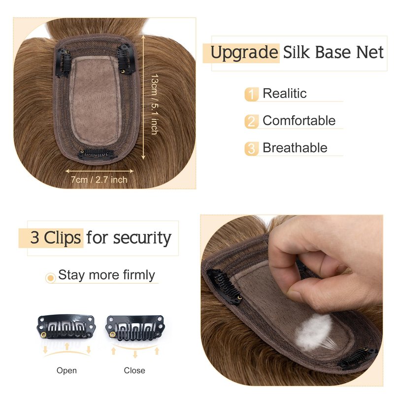 - ♛Realistic Silk base coverage Toupee♛ Topper with silk base has the most natural appearance compared to other like products.It can barely be told from real human scalp even through close observation.No one can find your secret. Base size: 7 cm x 13 cm(2.7”x5.1” approximately).