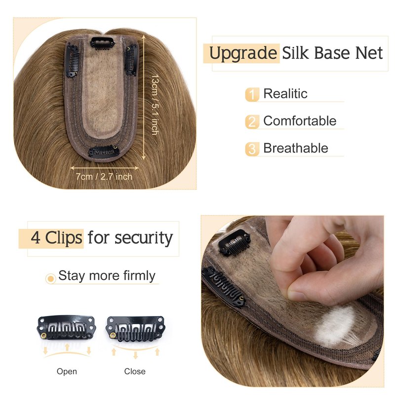 - ♛Realistic Silk base coverage Toupee♛ Topper with silk base has the most natural appearance compared to other like products.It can barely be told from real human scalp even through close observation.No one can find your secret. Base size: 7 cm x 13 cm(2.7”x5.1” approximately).