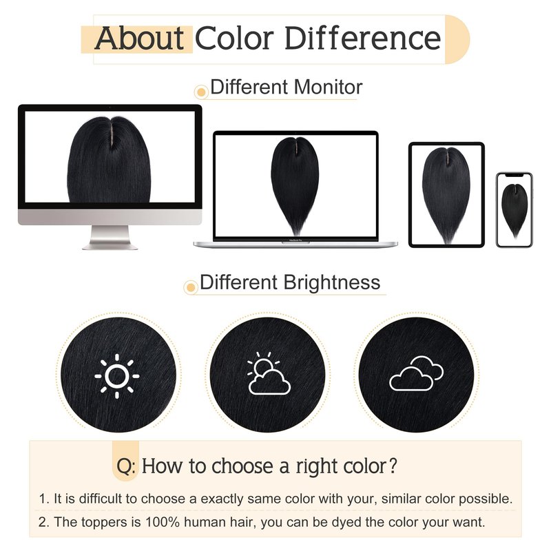 - ♛About color difference♛ Color might be slightly different from the picture showed considering light and different monitor. But since it’s real human hair, the topper can be dyed to the exact color you want if needed.