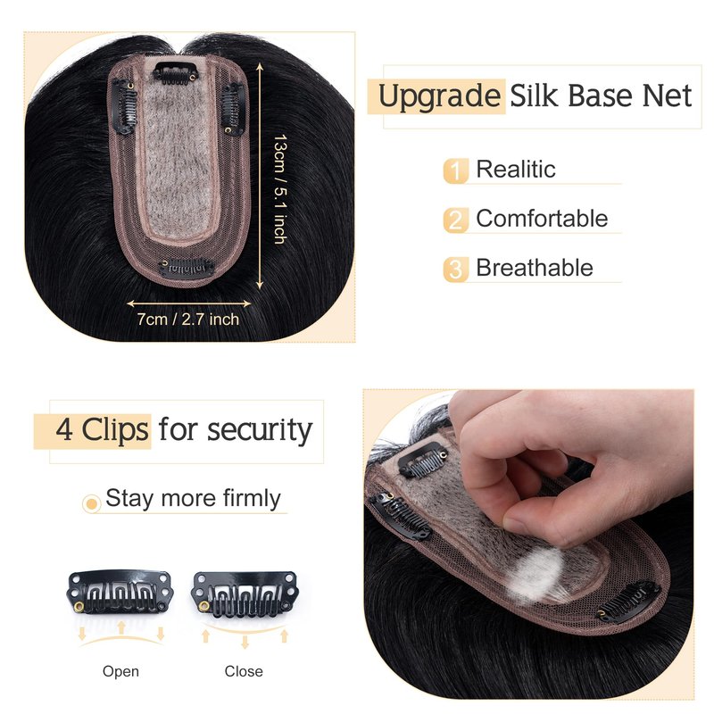 - ♛Realistic Silk base coverage Toupee♛ Topper with silk base has the most natural appearance compared to other like products.It can barely be told from real human scalp even through close observation.No one can find your secret. Base size: 7 cm x 13 cm(2.7”x5.1” approximately).