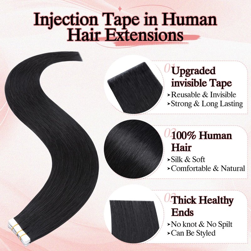 - Ingection Tape in Hair Extension:Ingection Tape in Hair Extensions uses a unique injection technology to create the natural look of hair growing directly from the scalp, making them 100% invisible for a more natural, more discreet extension result.