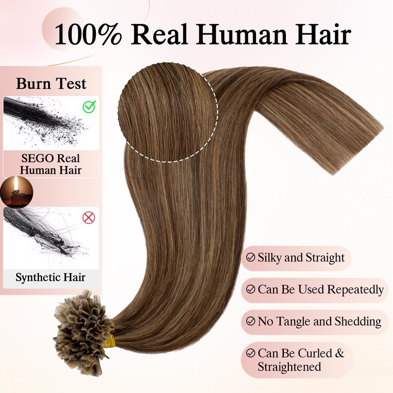 SEGOHAIR U Tip Hair Extensions Human Hair Pre Bonded Extensions Keratin Fusion Extensions K Tip Hair Extensions Real Human Hair Silky Straight Natural 50g/100 Stands 16" Medium Brown Mix Dark Blonde