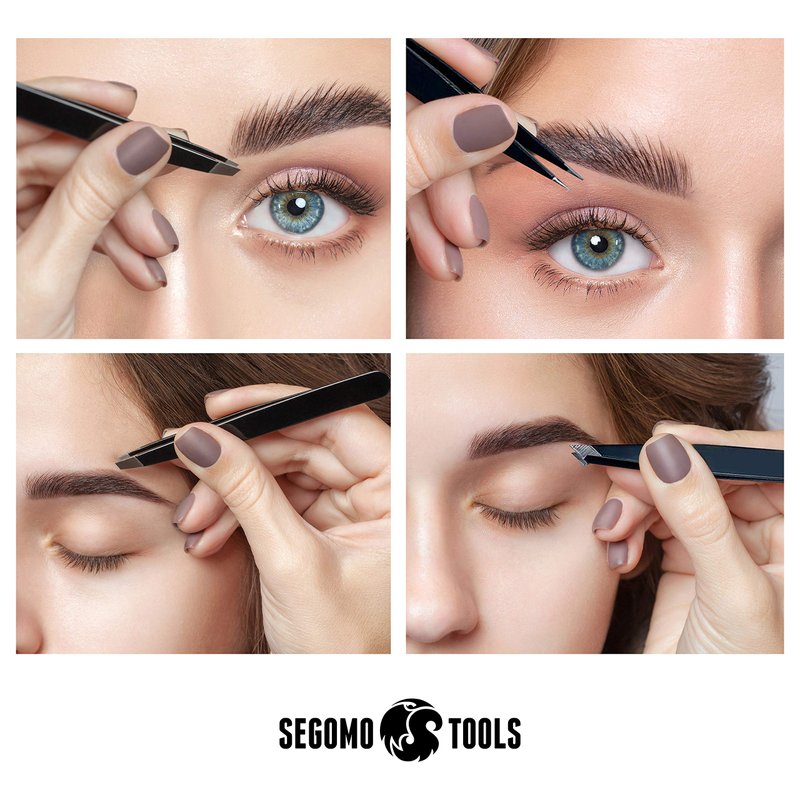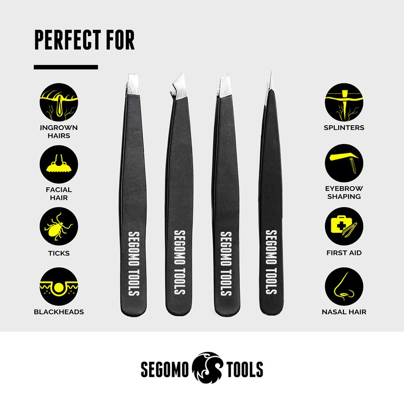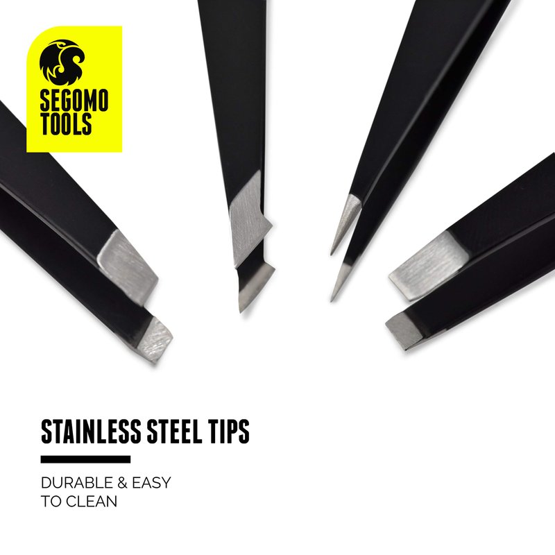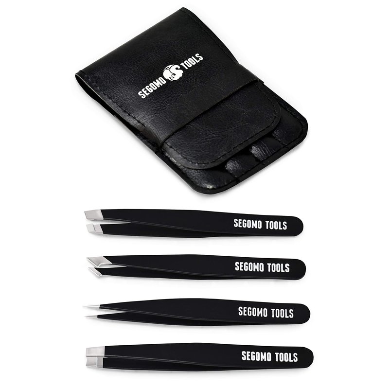 Segomo Tools 4 Piece Tweezer Set - Tweezers For Women - Ingrown Hair Removal Kit - Eyebrow Plucker - Precision Tweezers - Flat, Angled, Slant & Pointed Tweezers - TW004