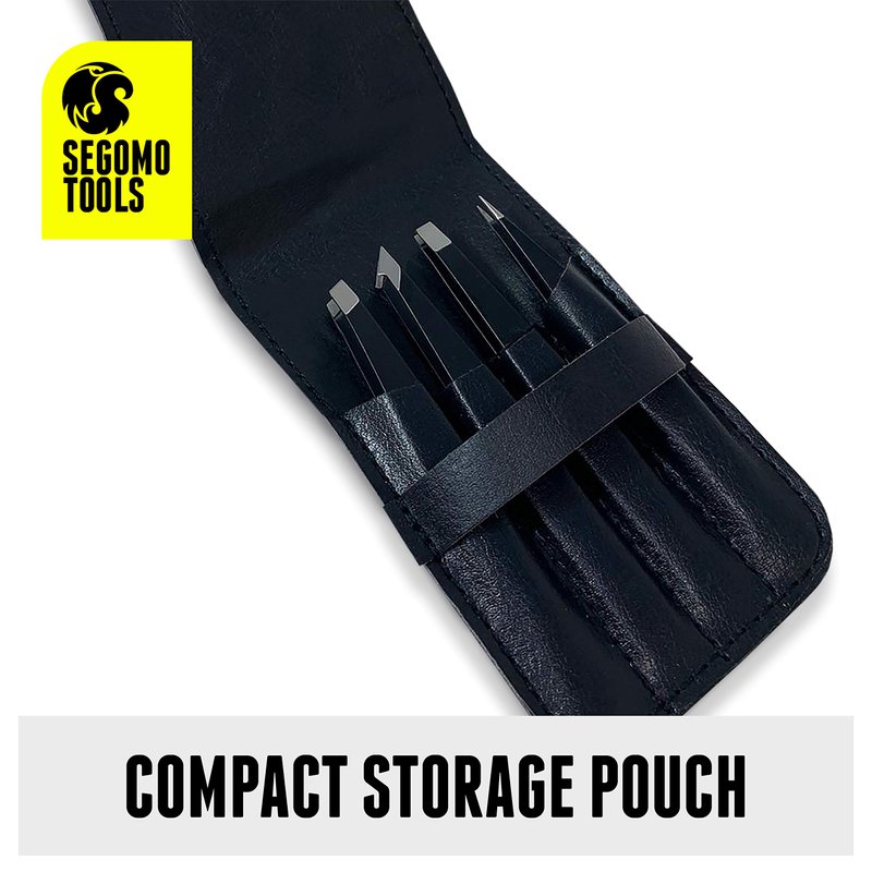 - [ Keep Your Tweezers Organized ] The set of hair tweezers is supplied in a storage pouch so that you can easily keep the 4 pieces in one place. These sharp tweezers are a perfect gift set for HIM or HER.