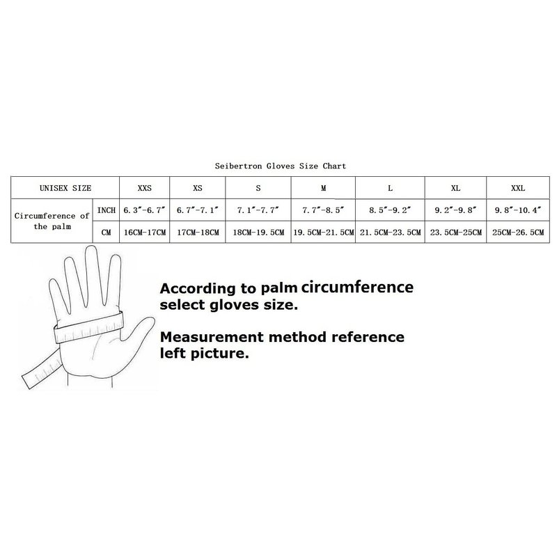 Method for choosing the size,According to palm circumference not including thumb(Refer to product's second image size chart).