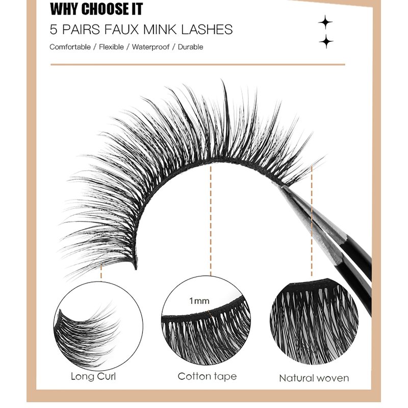 - [5 STYLES & NATURAL LOOK]Our false eyelashes come in 5 different styles, natural look, and fluffy. Whether you're attending a casual or formal event, you could find a suitable style to meet your specific needs and preferences.