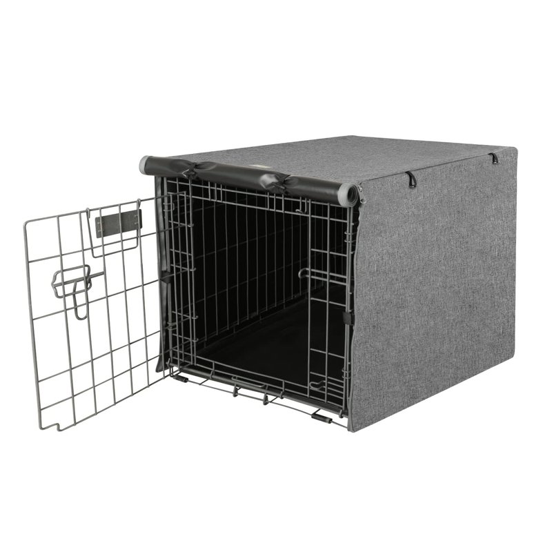 - Easy to Use: Two entrance door with rollable door curtains to adjust visibility and ventilation, and the zipper provides pet to get in and get out easily. Velcro fixed dog kennel cover with dog cage, and it can help the cover stay firmly in place.