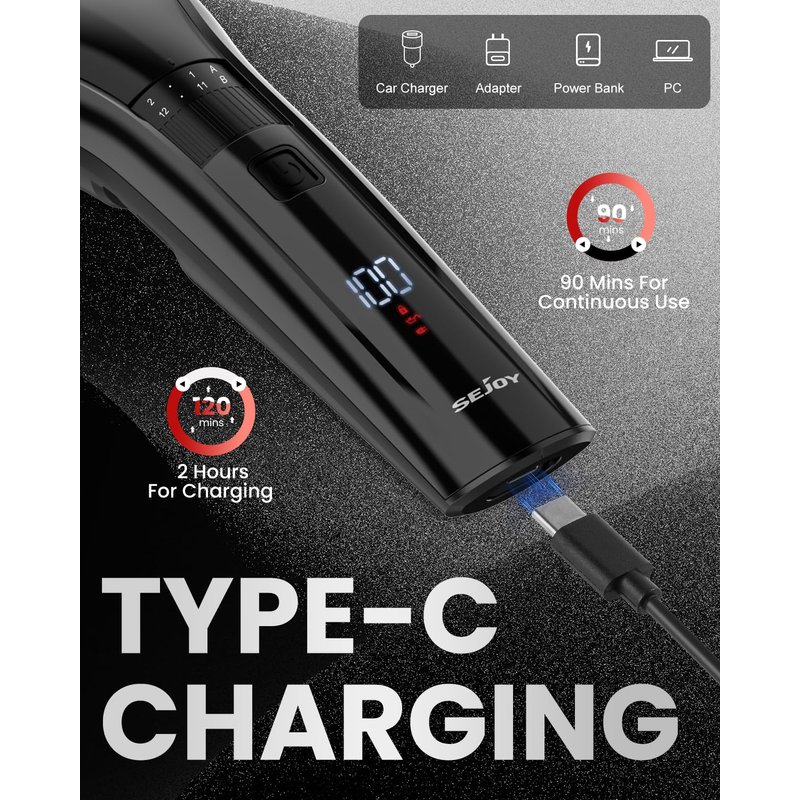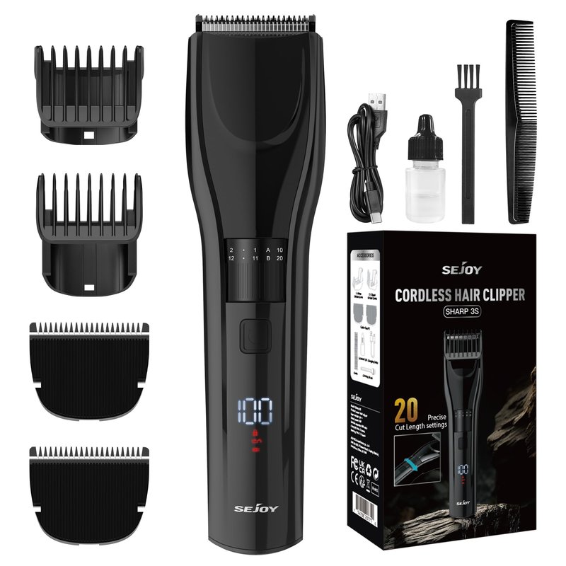 Sejoy Hair Clipper, Hair Clippers for Men Cordless Rechargeable Beard Trimmer LED Display Hair Clippers for Men Women Children Home Haircut with 2 Replacement Blades