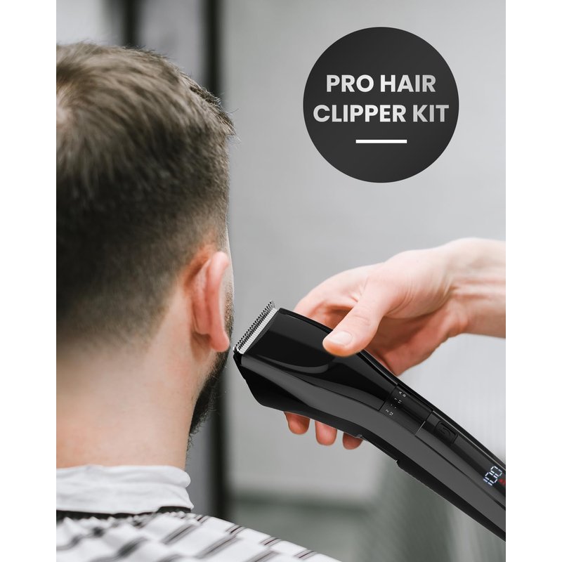 - 【High-Tech Efficiency】Rechargeable barber clipper for hair cutting is designed for the modern man. With an advanced LED display and TYPE-C charging, you're always informed and powered up. The robust 800mAh battery ensures a solid 1.5-hour performance from just a two-hour charge. And with the handy travel lock feature, you're assured that your clipper remains off and safe while in transit.