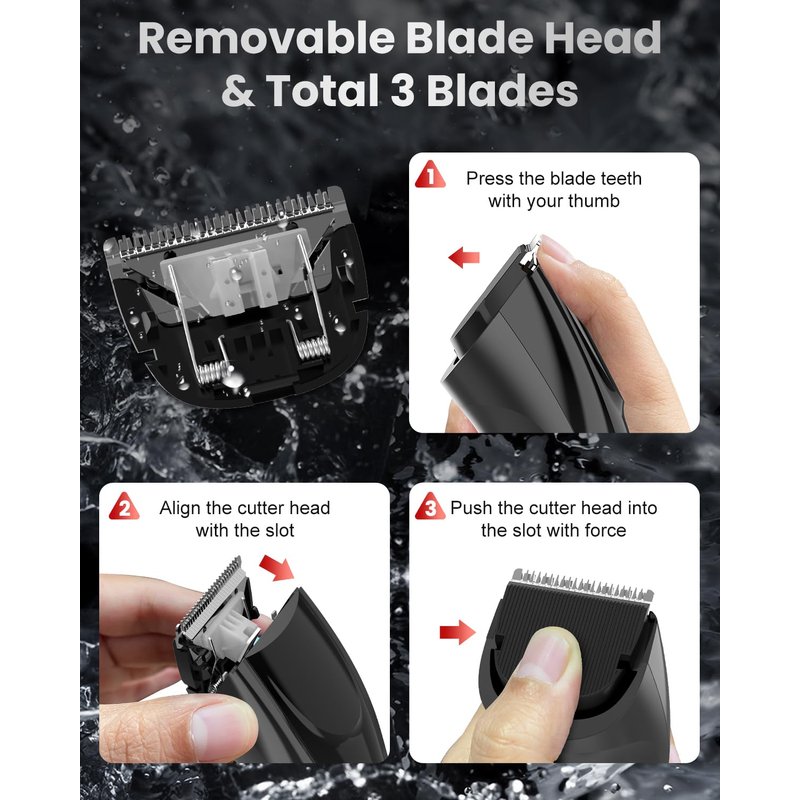 - 【Ultimate Clipper Design】Our hair clippers for men set the gold standard in grooming tools. Featuring a detachable blade mechanism, it comes with two replacement blades, ensuring you're always ready for action. No more blunt cuts or dragging – with our sharp, easily interchangeable blades, you're guaranteed a clean cut every single time.