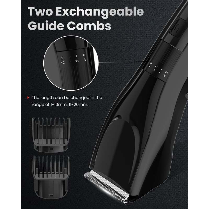 - 【Precision Meets Professionalism】 Dive into a world of precision with our Professional Hair Clipper. Boasting two adjustable combs, ranging from 1-10mm and 10-20mm, you're equipped with a staggering 20 length settings. From the subtlest trim to a complete style overhaul, our clipper promises a tailored experience, ensuring you always look on point.