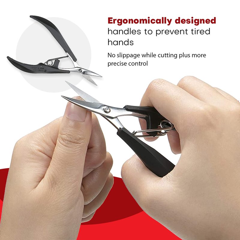 GRIP WHILE YOU CLIP SOFTER, THINNER NAILS! Similar to the SS-201, these scissors are suitable for cutting thin or soft nails. They have a serrated cutting edge that grips while you cut your nails. No slippage while cutting plus more precise control. Ergonomically designed handles to prevent tired hands. The sharp stainless steel edges will also cut both acrylic nails and acrylic toenails. The extensively-tested design of these scissors features a proprietary loop design that gives durability and smooth action. The serrated edges prevent slipping while cutting and have ergonomic handles to prevent tiring of the hands. Made in Japan.