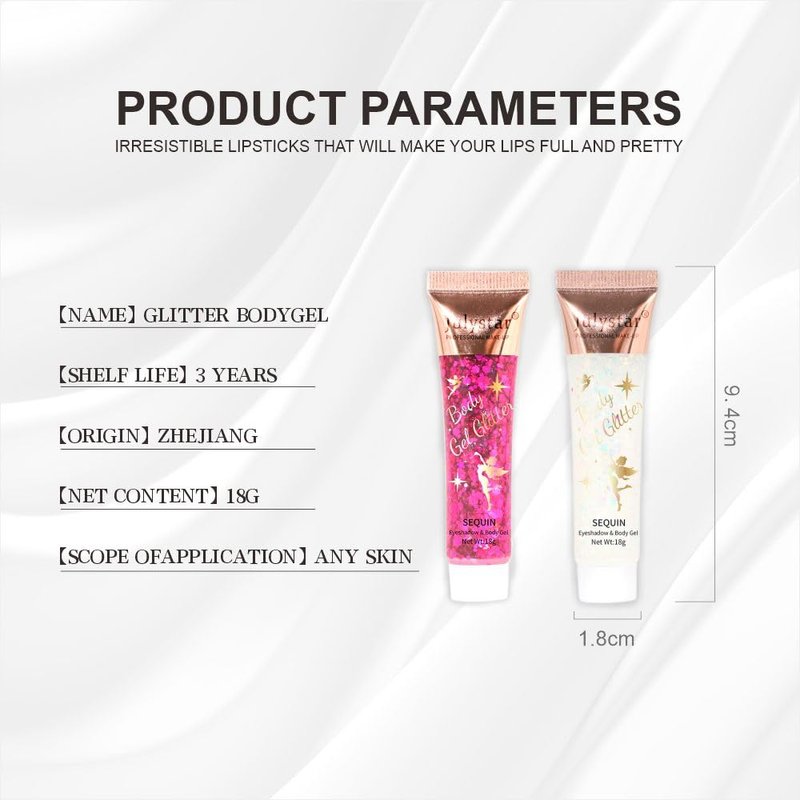 10 Colors Body Glitter Gel Product size: 10X1.8X2.2(CM) Product weight: 23G