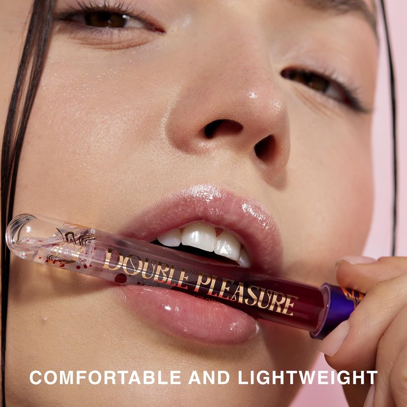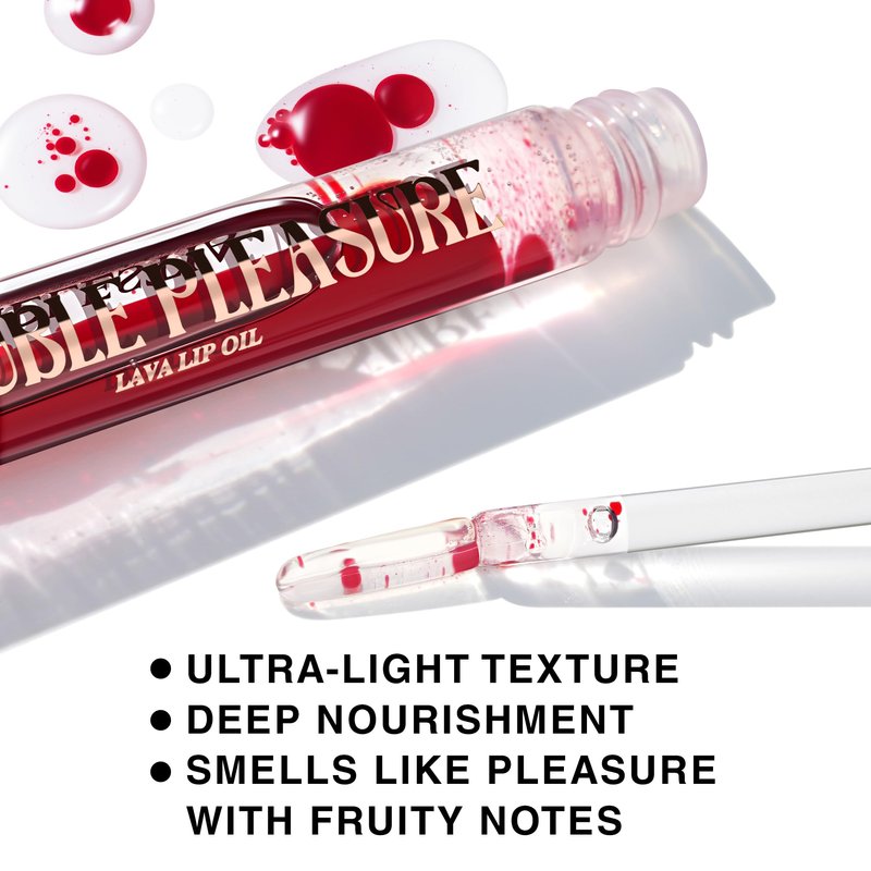 Experience twice the delight with our Double Pleasure Lip Oil. The innovative ultralight texture is created without the use of components of animal and vegetable origin. The oil softens, moisturizes, maintains skin elasticity, and prevents moisture loss. A hygienic silicone applicator allows you to apply the product evenly on the lips.