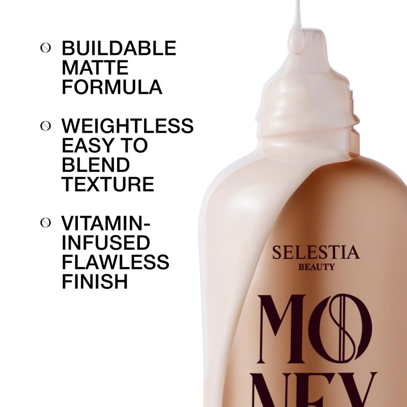 SELESTIA BEAUTY Matte Foundation Money - Long-Lasting Makeup Foundation with Flawless & Buildable Coverage - Liquid Foundation for All Skin Types (Ivory)