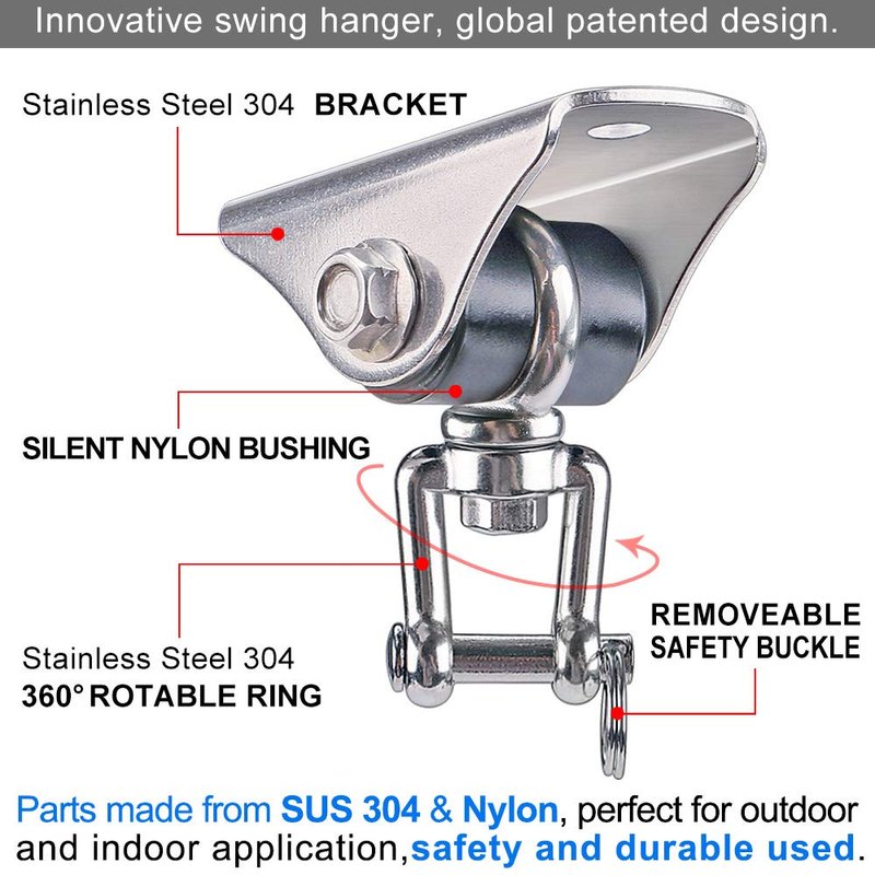SELEWARE Anti-Squeaking Swing Hanger Stainless Steel Swing Set Hook Ceiling Mount Bracket for Hammock Chair Toddler Swing Yoga Swing Punching Bag