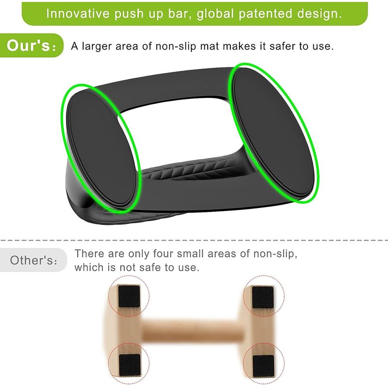 - The Parallettes bars with larger non-slip mats on the bottom keep your training stay safe and also protect your floor.