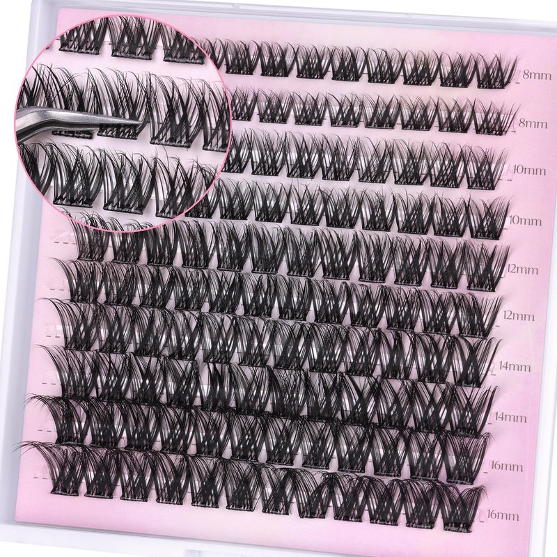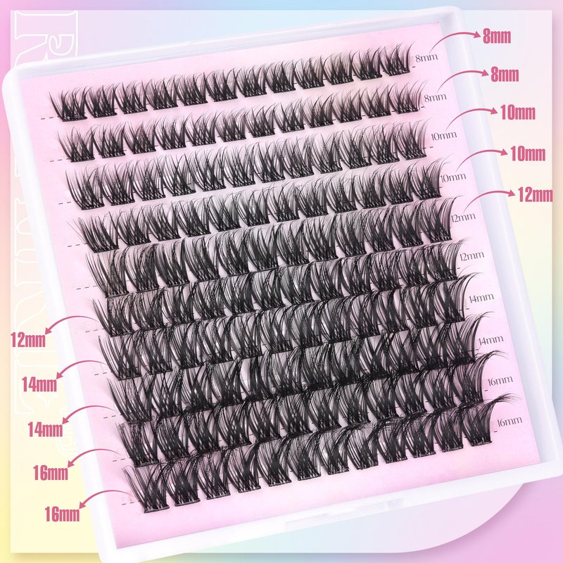 - DIY at Home Cluster Lashes - This self adhesive lash clusters is 120pcs , 3 different length mixed DIY lashes extensions: 10mmx36pcs, 11mmx36pcs, 12mmx48pcs, based on your preferences and desired wispy lash clusters, you can diy at home instead of salon, save more money and time for makeup, more convenient