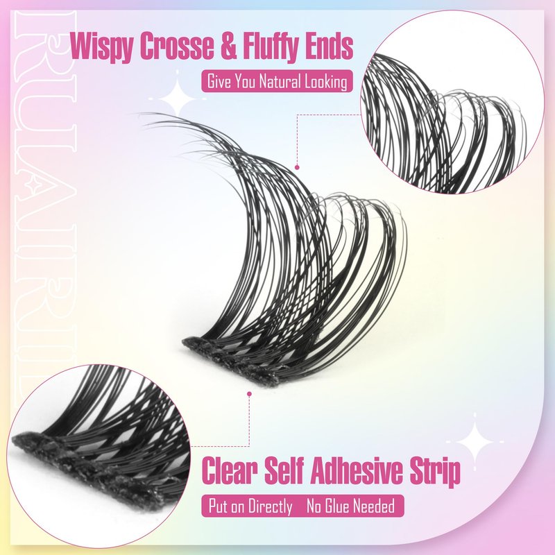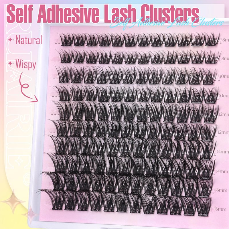 - Self Adhesive Eyelash Clusters - Our lash clusters with clear self adhesive strips on lash band, very sticky, strong hold, long lasting, do not need cluster lash glue, new fashion reusable self adhesive eyelashes