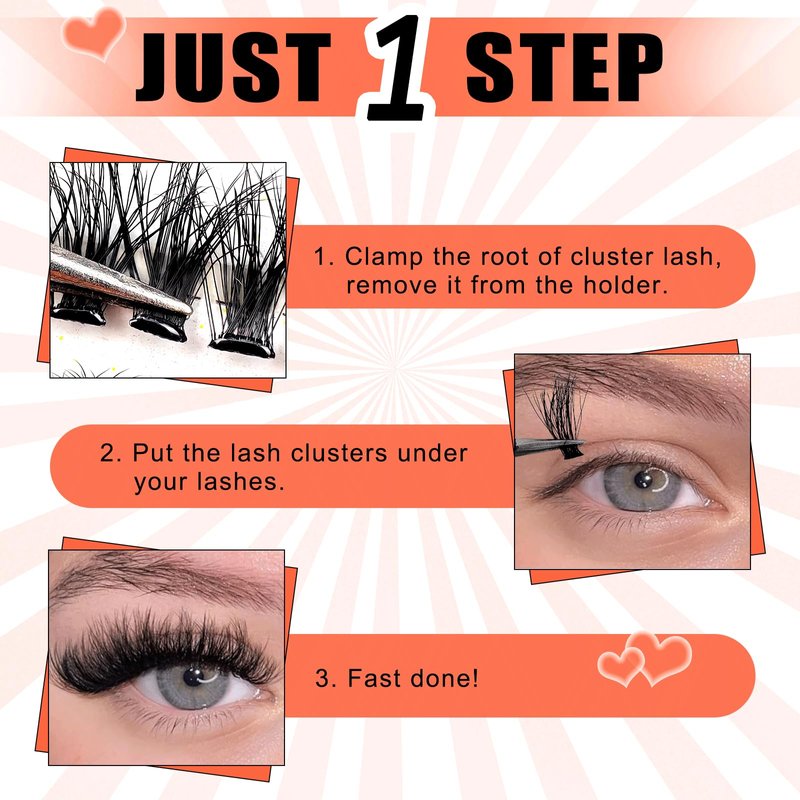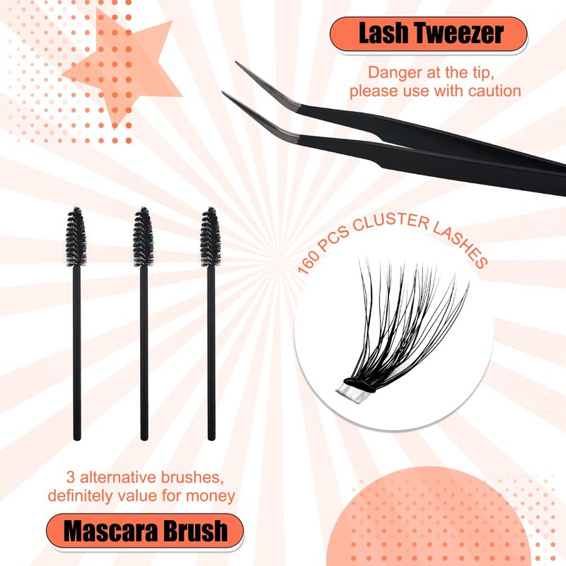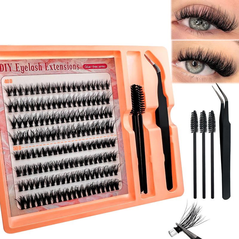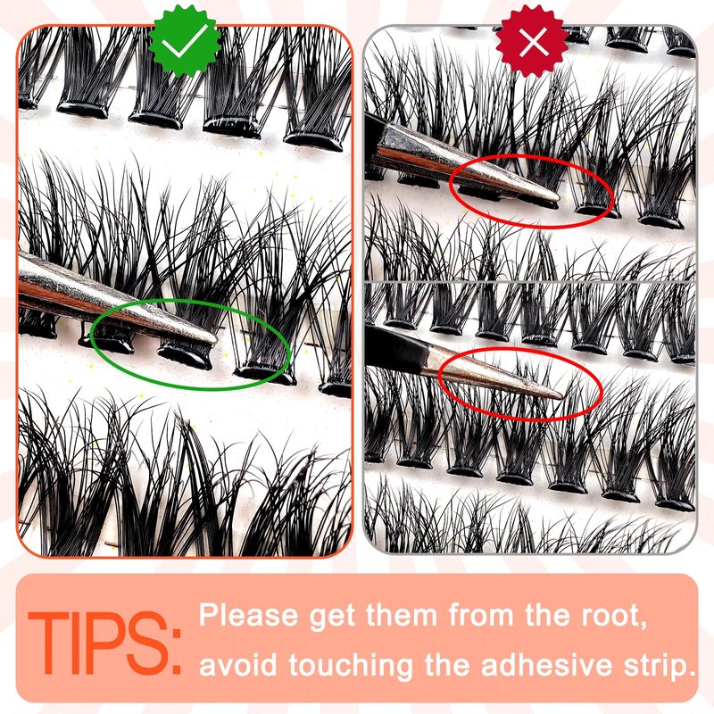 - Self Adhesive Eyelashes: The self adhesive lashes clusters kit contains 60 pcs pre glued lashes, eyelash curler and lash tweezer. No need for extra glue or waiting for it to dry, just use tweezers to place the cluster lashes under your natural lashes.