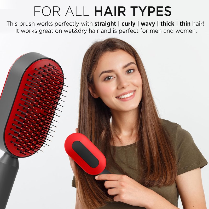 - 🎀3D Air Cushion Design: Experience a comfortable and gentle brushing experience with Self Cleaning Hair Brush. The 3D air cushion adapts to your scalp’s contours, evenly distributing pressure and reducing stress on your scalp and hair roots.