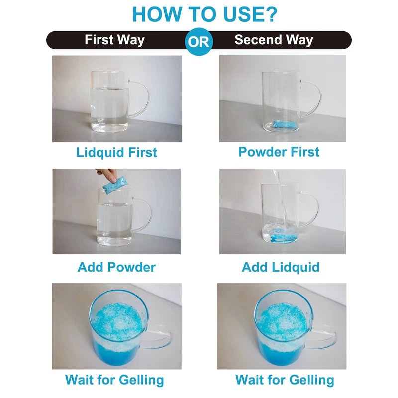 - WORKS WITH ALL HUMAN & PET LIQUID WASTE TREATMENT: why it’s called Poo Gel, since it absorbs liquid waste until there’s only a gel-like consistency left to dispose of. You can either pour the powder first & then the liquid waste is added. Or if you’re using a portable toilet & an compostable portable toilet bag, you can add the powder after the liquid waste. It even can be used in water. Next, it only takes 1-2 mins to solidify into a gel. Then, to properly dispose of it, you’ll have to let it disintegrate in the ground (takes about 7 days) or in direct sunlight (takes about 5 days).