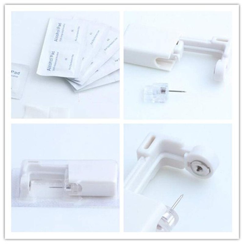 - ♥Easy to operate, Be sure to press it all the way down, hear a "click", and then release your hand, the needle tip will enter the ear plug, the ear plug will fall off naturally, and the puncture is completed.