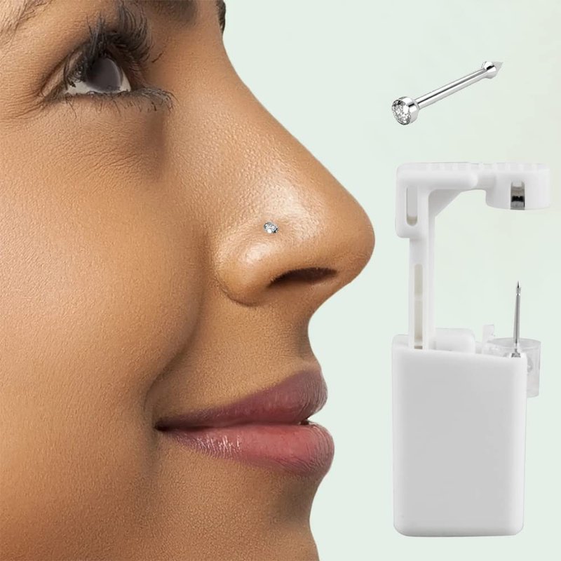 - NOSE Piercing Kit Including:Gun + Stud Ring+Alcohol Cotton,The Gun Body Is A Patented Product After Upgrading, Which Is Better Used,The Stud Earrings Which Inside Of The Gun Are Stainless Steel Grade Raw Materials, Plus Jewelry Grade Zircon Inlay Technology