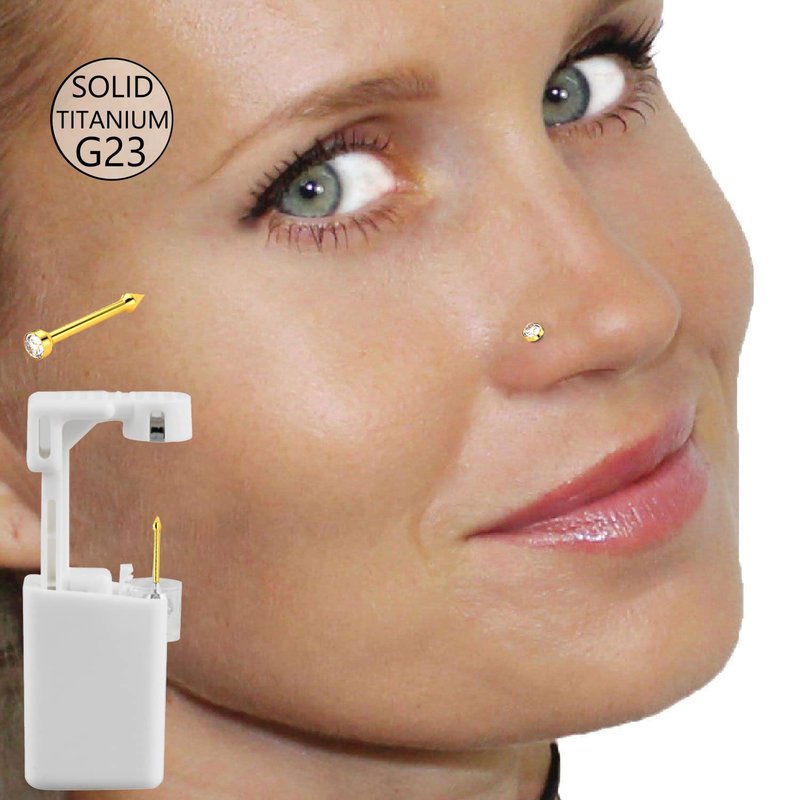 - NOSE Piercing Kit Including:Gun + Stud Ring+Alcohol Cotton,The Gun Body Is A Patented Product After Upgrading, Which Is Better Used,The Stud Earrings Which Inside Of The Gun Are Stainless Steel Grade Raw Materials, Plus Jewelry Grade Zircon Inlay Technology