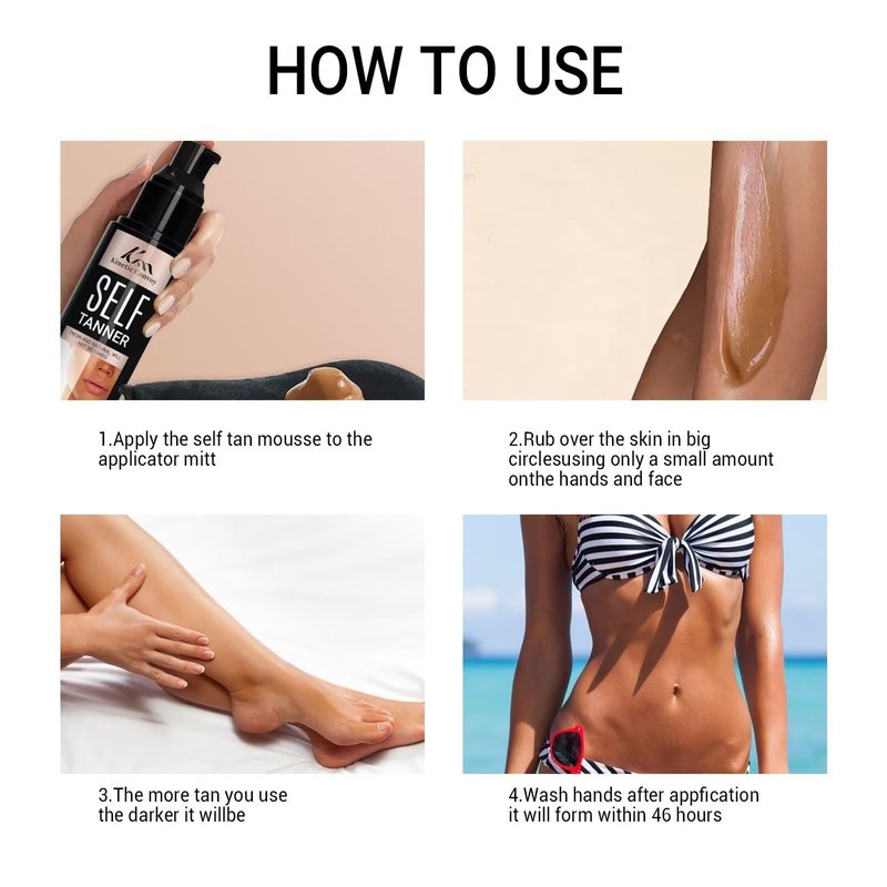 - Suitable for any skin type: Our tanning lotion is easy to use and suitable for any skin type. Simply apply it gently to dry skin, and wait for it to work, and you can enjoy even and glossy skin.