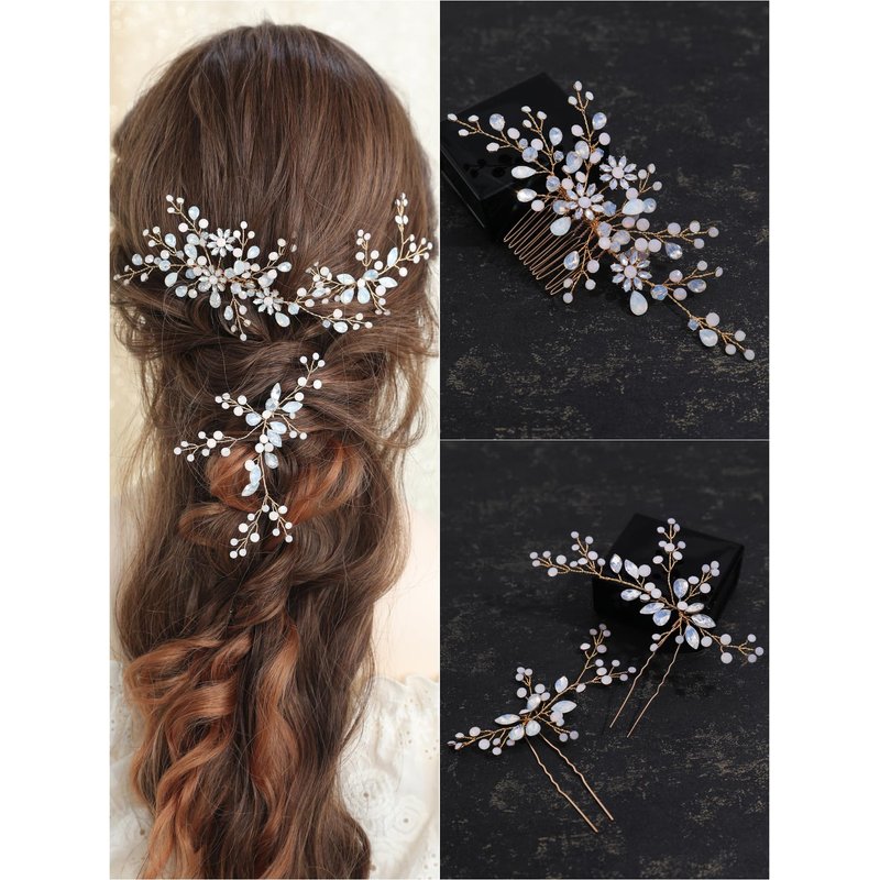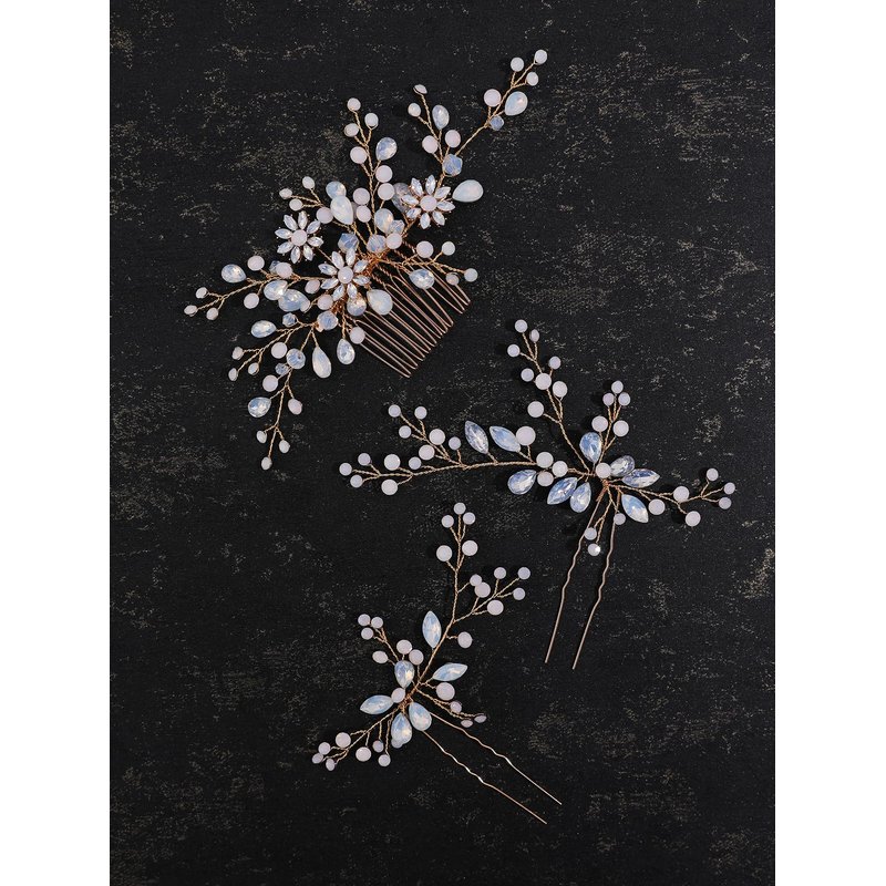 Wedding hair accessories are 3 pieces in total, made of sparkling rhinestones, copper wire, multiple colors to choose from, unique design, handmade.Bridal headdress can be worn with many styles of outfits and it will add the perfect touch to your outfit.