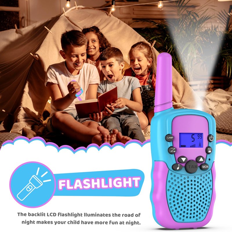 - Outdoor Children's Toys: The walkie-talkie can inspire the interest in communication and let your kids enjoy the adventure of the family or outdoor games, which would definitely make your little ones excited! Built-in flashlights are also for complex outdoor environments, because it provides high visibility. NOTICE: Please use formal and guaranteed batteries and ensuring that the battery poles are correctly aligned.Need 4 AAA batteries each(NOT included).