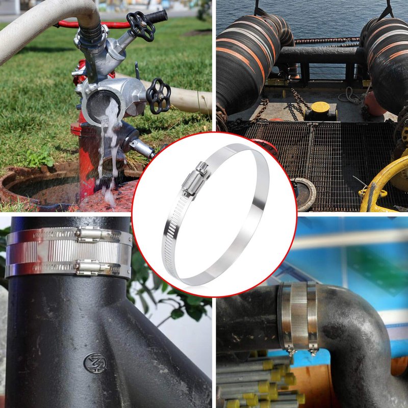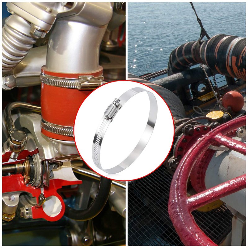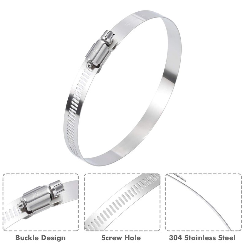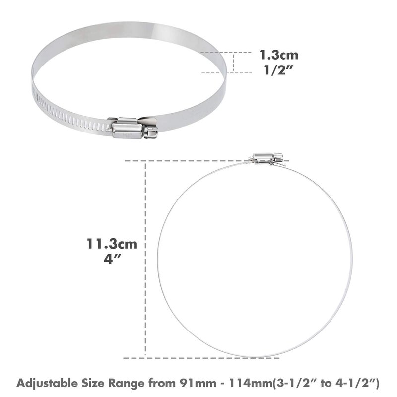 - FLEXIBLE ADJUSTABLE SIZE RANGE – The 4-inch hose clamps stainless steel can be adjusted from 91-114mm / 3.6-4.4 inch. Flexible and ductile for use