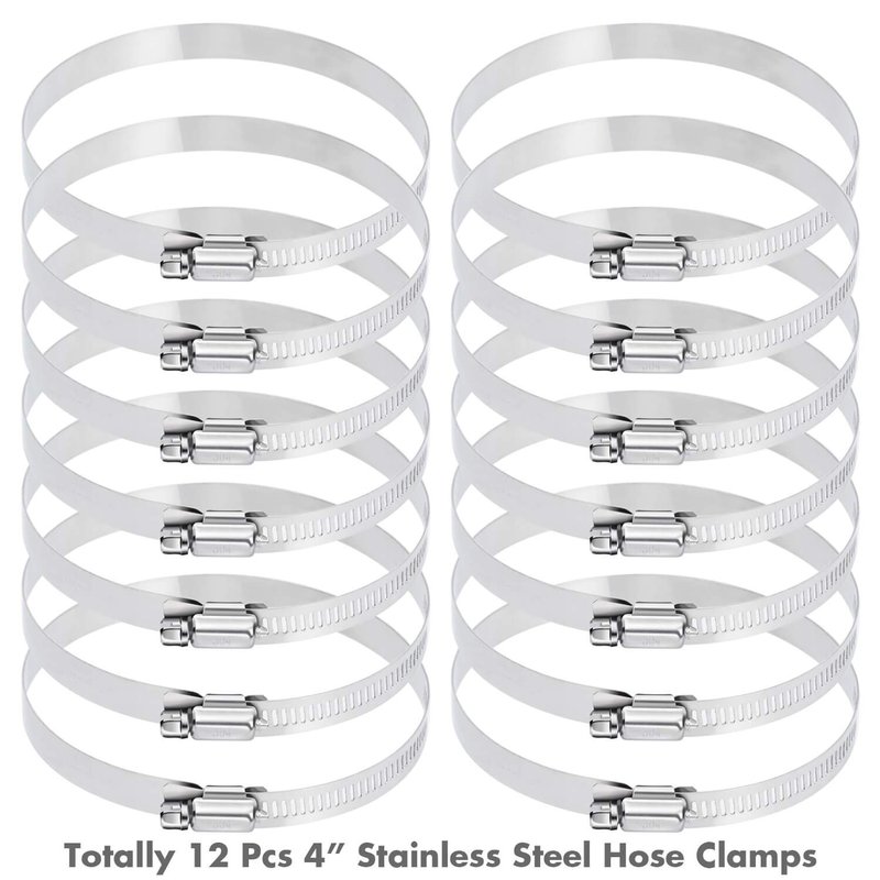 Selizo 12Pcs Hose Clamps, 4 Inch Hose Clamp 304 Stainless Steel Hose Clamps Duct Clamp Worm Gear Adjustable 91-114mm Hose Clamp, Fuel Line Clamp for Plumbing, Automotive and Mechanical Applications