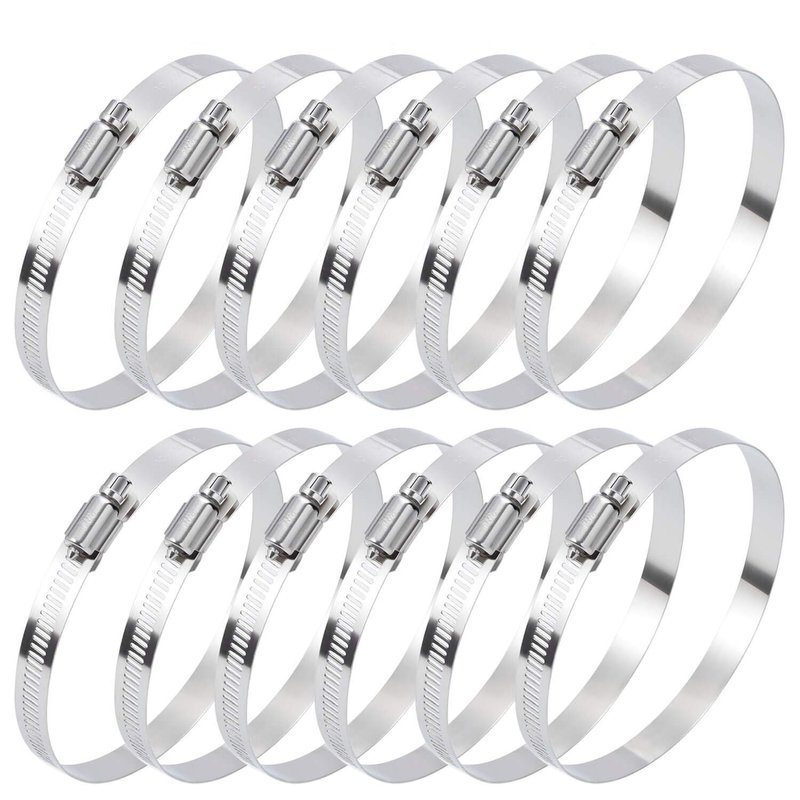 - PACKAGE INCLUDES: The stainless hose clamp kit comes with totally 12 pieces hose clamps with adjustable size range from 91 mm to 114 mm, perfect for hose outside diameter 91-114mm / 3.6-4.4 inch