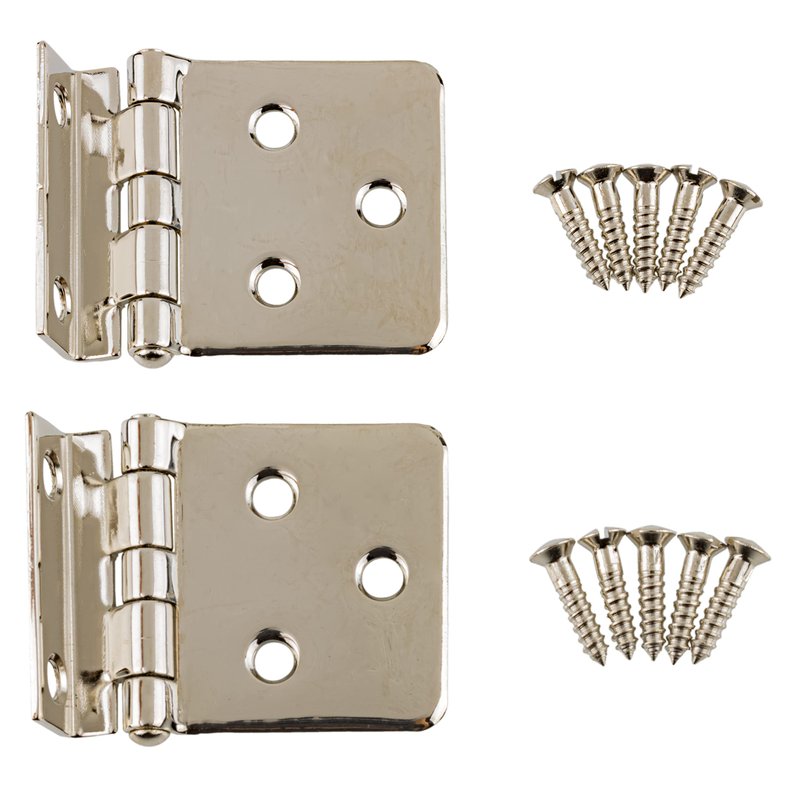 - These offset mount cabinet hinges are made of solid brass with a nickel finish applied.