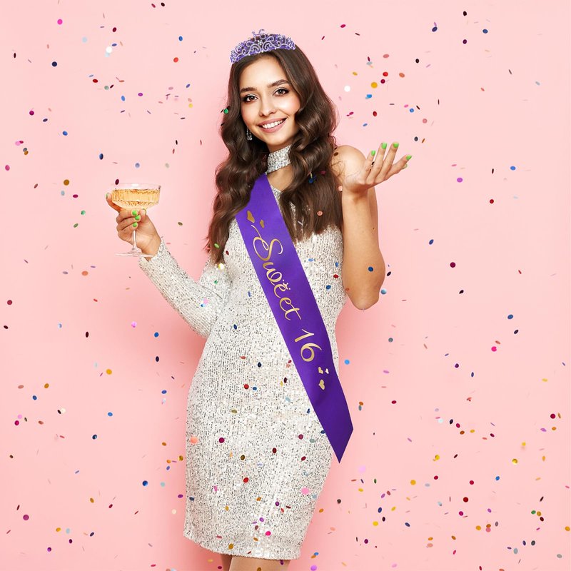 - Sweet 16 Sash: In the selection of the cloth, we used the smooth satin cloth to make you the most eye-catching princess at your birthday party