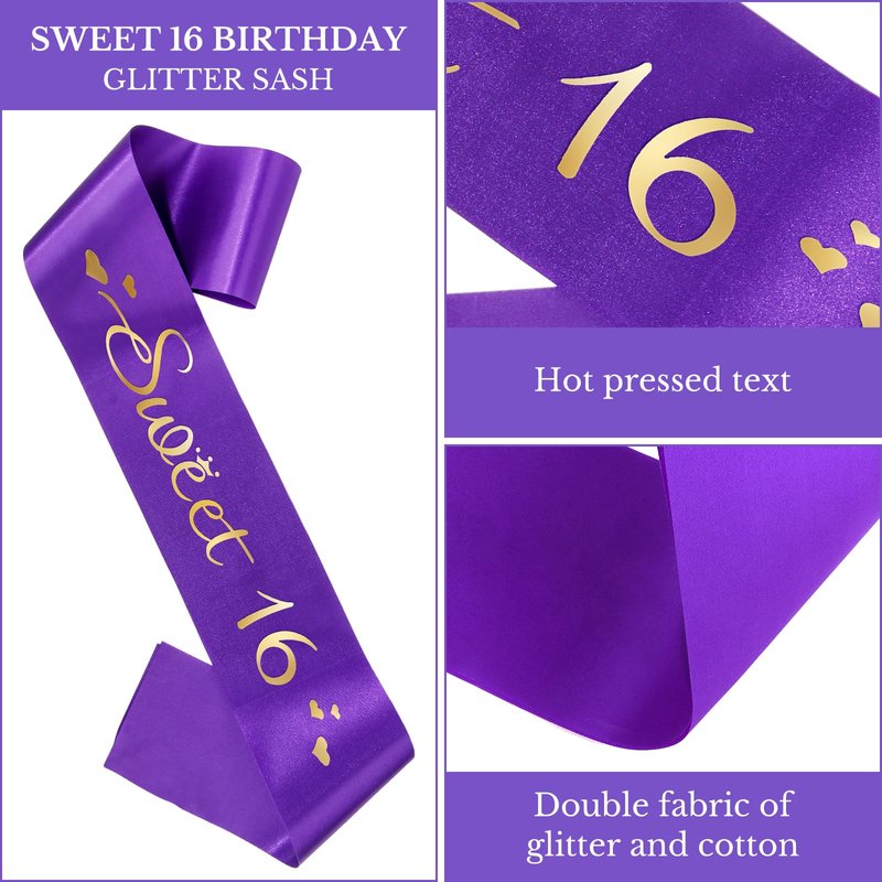 Semato Sweet 16 Party Decorations Set - Purple 16th Birthday Crown and Sweet 16 Sash Glitter Kit for Girls Birthday Happy Birthday Girl Tiara Birthday Party Supplies and Favors
